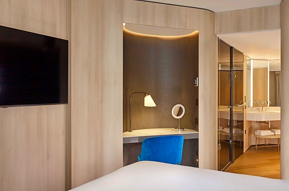 This room offers complimentary WiFi, bespoke bed and a 4K Ultra HD 49-inch TV. Additional amenities include a mini fridge, includes barista-like experience from our Nespresso machines that you can enjoy within your room throughout the day includes and a laptop safe.